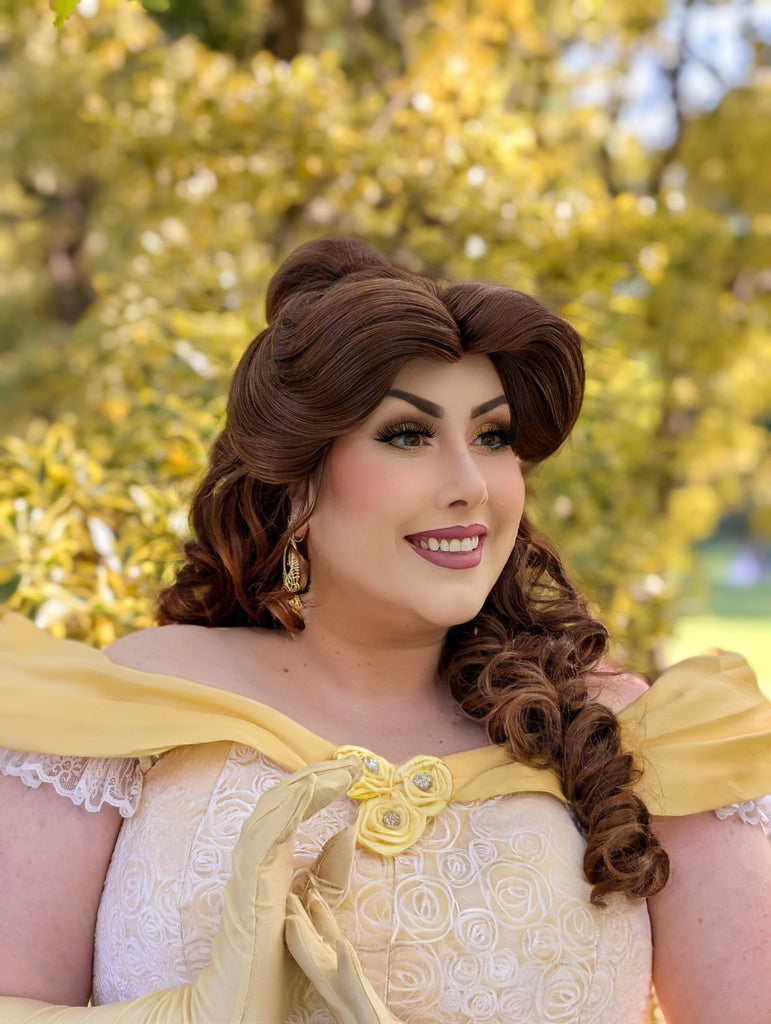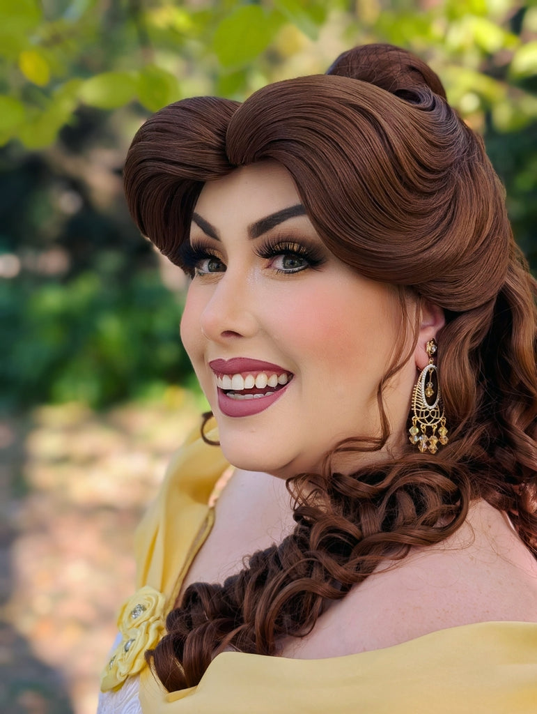 The inside circle rim boasts a personal Emily Jane Designs touch with a layer of tiny crystals, adding an extra sparkle. Despite their intricate design, the Belle earrings and hairpiece are lightweight and comfortable, making them perfect for any occasion, from Princess Parties to everyday wear.
